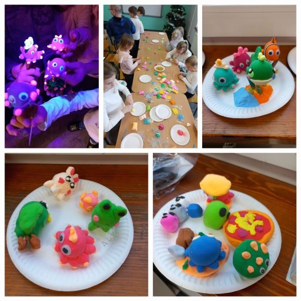 Najmłodsi przy pomocy kredek i kolorowych kółek wyczarowywali niezwykłe prace plastyczne, które teraz zdobią nasze szkolne korytarze. Słuchali też opowieści o małej Vashti i uczestniczyli w zabawach integracyjnych.